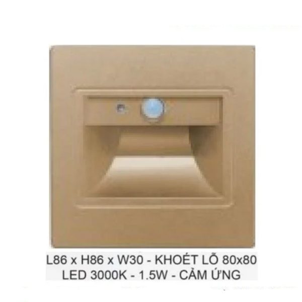 ĐÈN ÂM TƯỜNG, ĐÈN ÂM CẦU THANG, ĐÈN ÂM BẬC THANG _ LED TÍCH HỢP CẢM BIẾN (CẢM ỨNG) CHUYỂN ĐỘNG 1,5W VUÔNG VÀNG